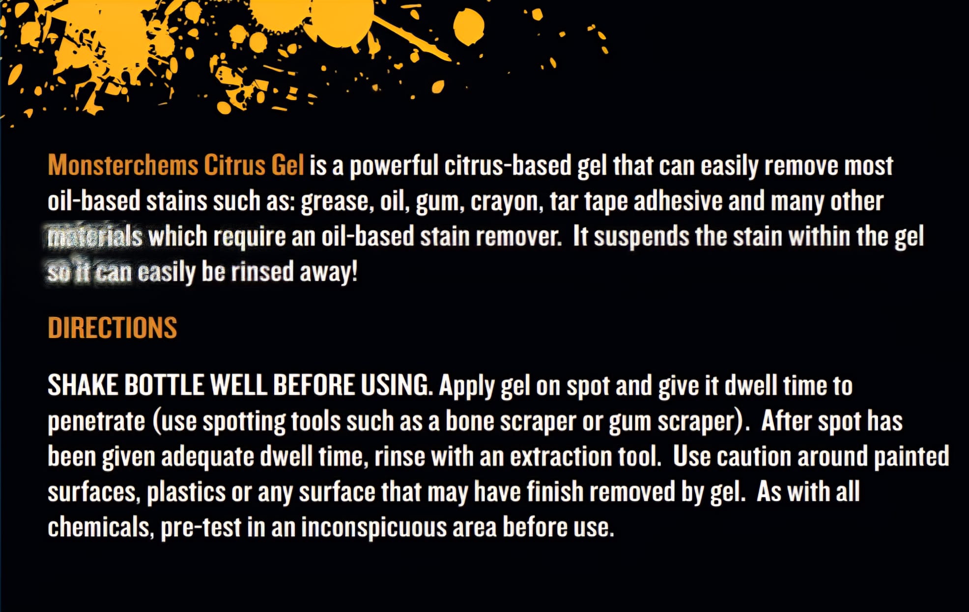 Lift the stain. Leave no mess. Trust Monsterchems Citrus Gel.